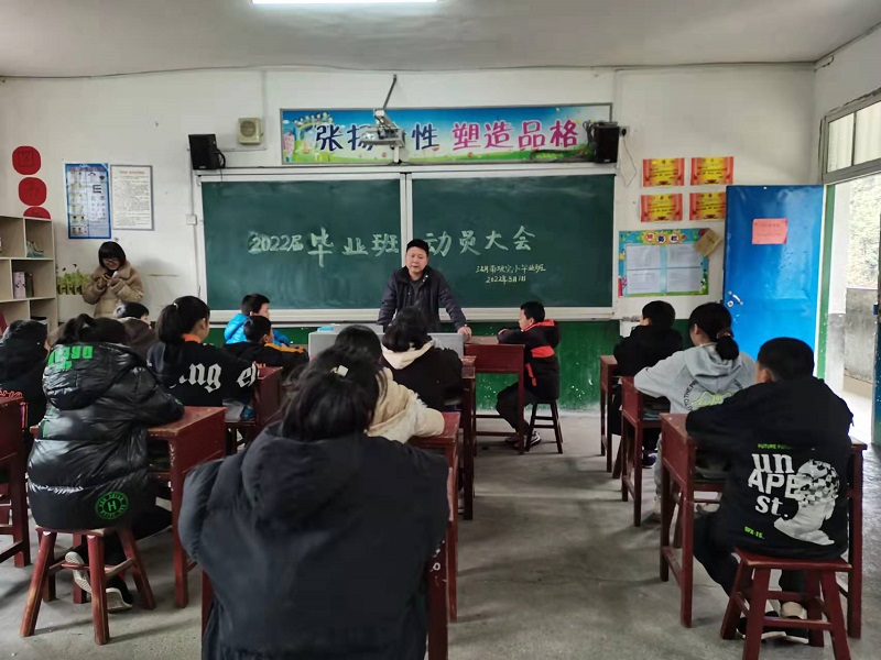 本网讯 3月1日,湖南坡完小召开了2022届六年级毕业班学生动员大会。该校校长刘勇、教导主任邓阜及六年级全体师生参加了本次动员大会,会议由六年级学生段绪缘主持。 会上,刘勇简单小结了学生上学期的学习情况,表扬优秀学生。深入浅出讲了大家目前存在的问题和值得努力的地方,以上届六年级成功的例子、结合自己的经历谈了感受,同时鼓励同学们要正视自己的不足,不要失去信心,虽然基础差,但勤能补拙,天道酬勤,只要肯努力,一定会有收获。邓阜要求同学们科学地安排时间,系统高效学习,为母校增光添彩。学生代表王梦瑶代表全体毕业班学生发言,表达了对学校的热爱,并表示将努力学习,不辜负学校,家长们的期望! 最后,六年级全体学生共同宣誓,决定要好好学习,踔厉奋发、笃行不怠。(通讯员:谌波)
