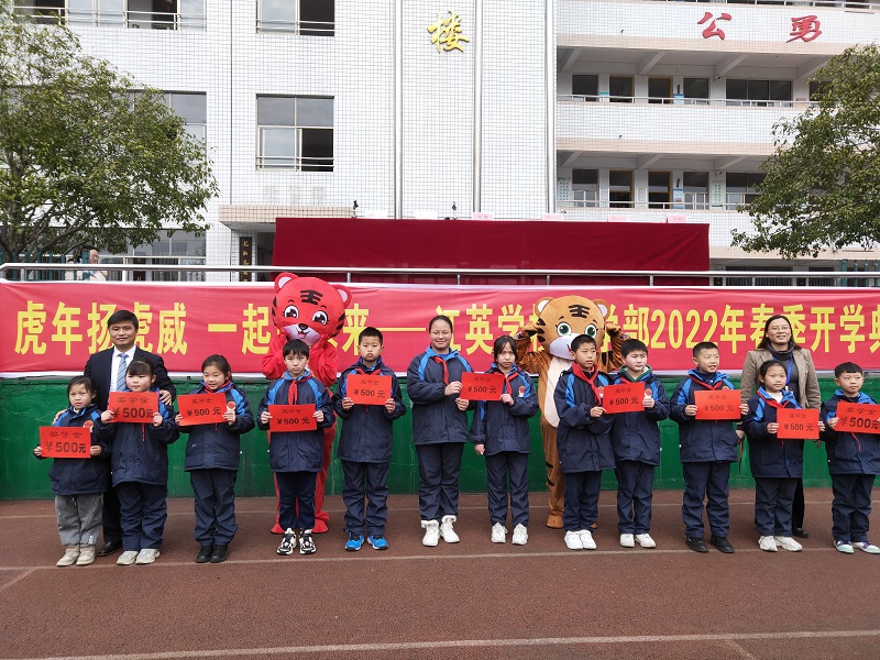 本网讯 2月25日,江英小学部1200多名师生齐聚大操场,隆重举行2022年春季开学典礼。 典礼由教务主任杨文清主持,她介绍了与会的行政领导,也为同学们介绍了带来欢乐和健康的吉祥虎“欢欢”和“康康”。升国旗、奏唱国歌;升校旗、奏唱校歌。师生们激情满怀、纵情高歌,抒发着对新学年的展望、新征程的憧憬。教科室文亚玲主任带领新生国旗下宣誓,“勤学惜时、团结友善、勇于拼搏、全面发展……”莘莘学子庄严承诺,追光而行!学生处主任孙柏林,从德育实践、星级评比、常规管理、养成教育等方面提出了新的目标与要求,主题报告《习惯引领未来》为师生新学期的发展护航;《五育并举开新局,筑梦未来续辉煌》,杨文清主任从教学质量、成长课堂、特色课程、书香建设等方面进行了总结与评点,“规范意识、质量意识、创新意识、特色意识”深入人心。学校领导为获得奖学金的学子颁发了奖学金。 小学部校长刘艳在《虎年扬虎威,一起向未来》的主题致辞中,祝愿江英学子在新学期都能成为“五虎”健将,做会自我保护的“安全虎”、坚持锻炼的“健康虎”,爱劳动的“能干虎”、懂礼貌的“文明虎”、爱学习的智慧虎,如“虎”添翼,虎虎生威!祝愿江英的每位师者,在2022年,以虎虎生威的雄风,生龙活虎的干劲,气吞万里如虎的精神,同心同德,齐心协力,续写教育新篇章,献礼党的二十大!大会最后,江英学校校长姚喜临寄语全体师生,落实“双减”,增加“四度”:课外阅读的饱和度、劳动教育的体验度、体育运动的参与度、艺术修养的感受度。争做时代的建设者、社会主义事业的接班人!(通讯员 刘艳)