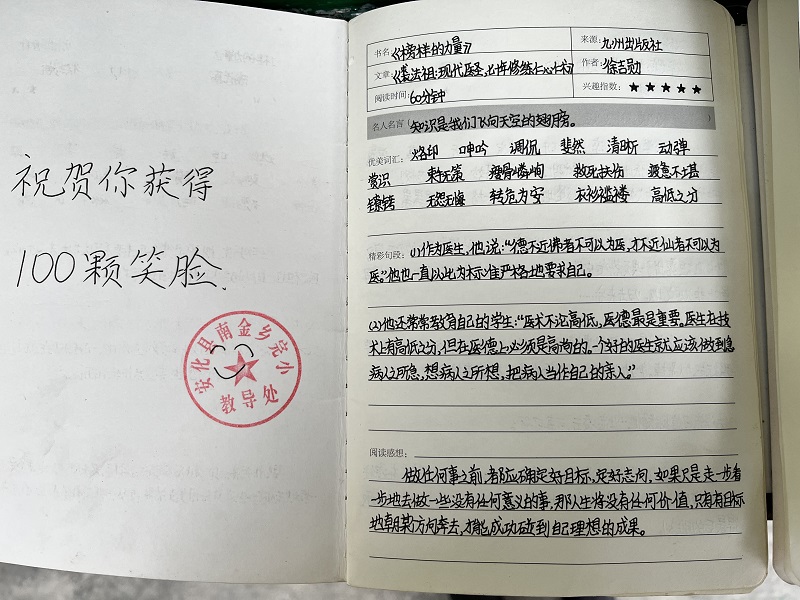 本网讯 2月20日,南金乡完小组织开展“优秀寒假作业”展示活动。 走廊上,前来参观的学生络绎不绝。孩子们认真欣赏、学习,作业中清晰美观的字迹、标准的格式都给参观学习的同学留下了深刻的印象,不禁连连发出赞叹,“字迹好端正啊!”“画得真漂亮啊!”大家都纷纷表示,要向这些作业优秀的同学学习,争取下一次也能晒晒自己的作业!参观作业的同学夏兴旺讲道:“这次作业展不仅使自己与同学们分享了寒假生活,更让自己看到了与优秀同学的差距,新学期要向他们学习,力争上游!” 从本次作业展示活动中可以看出,孩子们自我成长迅速,学习态度端正,认认真真完成每一道题,踏踏实实写好每一个字。宝剑锋从磨砺出,梅花香自苦寒来。我相信孩子们时刻保持这样的学习态度,踏实好学,经过努力,一定会取得更大的进步,希望在新的一年里遇见全新的自己。(通讯员 林志武)