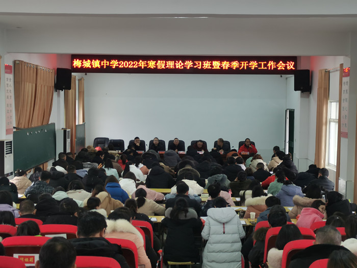 本网讯 2月16日,梅城镇中学组织全体教职工举行2022年寒假理论学习班暨春季开学工作会议。 会上,党支部副书记李永明作师德师风专题报告,分析了学校师德师风现状,带领老师们学习了相关师德师风建设的法规政策,明确了本学期师德师风建设的重点,要求全体教师严守师德规范,做优秀的人民教师,树立梅城镇中学教师队伍的良好形象。业务副校长戴彪作了教学质量分析报告,全面总结了2021年学校教育教学工作情况,肯定了成绩,也指出了不足,他希望全体教师能增强质量意识,在新的学期解决问题,发扬优势,团结协作,共促教学质量的稳步提升。德育副校长李德良就德育与安全工作进行了强调,并对开学工作进行了具体部署,希望老师们能以饱满的热情投入到新学期工作中,保证开学工作的圆满开展。 校长喻选民作新学期工作报告,他对2021年学校工作进行了全面的总结,对新学年提出了设想,明确了目标,推出了举措。他希望全体教职员工能凝心聚力,共同驾驶梅城镇中学这艘大船,乘风破浪,开创新局面,再创新辉煌。 梅城镇中心学校校长贺荻在会上发言,他对学校工作提出了建设性的要求,一要根植学校的主流文化,二要“五育”并举提高教学品位。他勉励全体教师能发扬艰苦奋斗精神,在新学年续写梅城镇中学新的篇章。(通讯员 高少华)