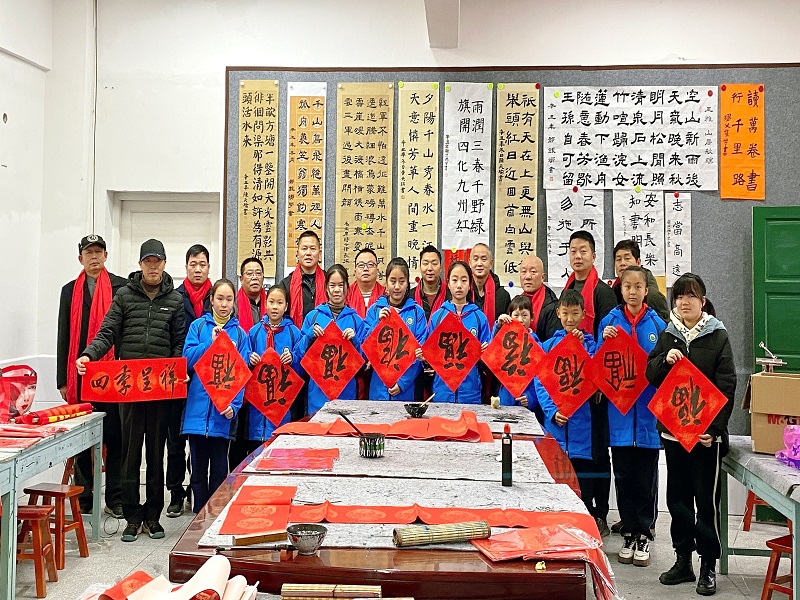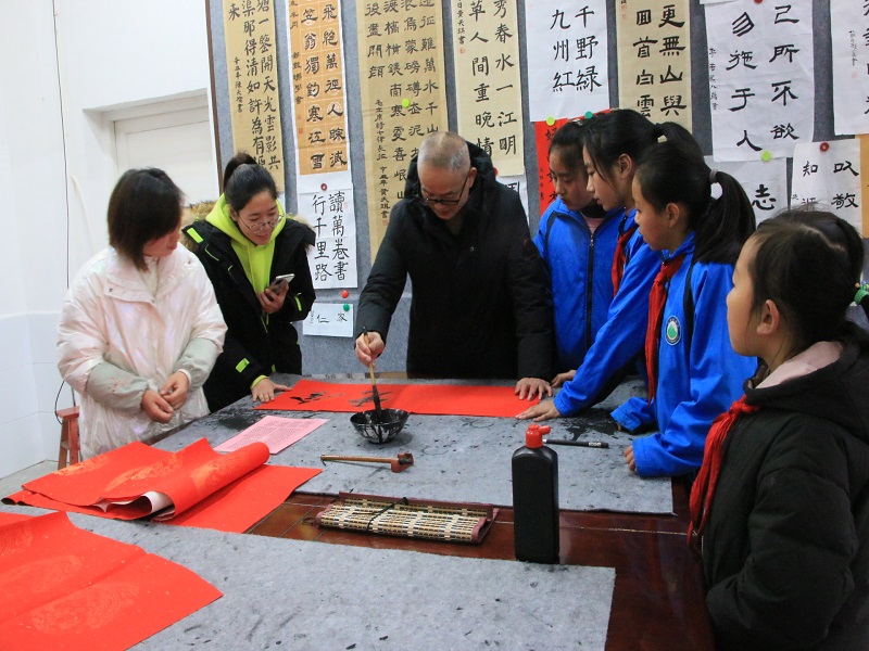 本网讯 1月6日,由安化县教育局组织的“书法进校园春联义写活动”在马路镇完小举行。安化县教育局机关工会副主席陈方明带领安化县四位书法家莅临现场泼墨为师生写春联,把浓浓的年味和新春的祝福送给学校师生。