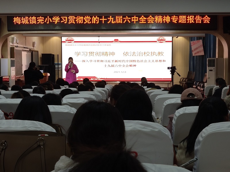 本网讯 12月8日,安化县梅城镇完小党支部书记、校长夏国荣主持学习和总结近段贯彻十九届六中全会精神情况,并做了《学习贯彻精神 依法治校执教》的专题讲座。 十九届六中全会是在“两个一百年”奋斗目标历史交汇关键节点上召开的一次重要会议,梅城镇完小精心谋划,全面安排,以学习贯彻全会精神为动力,在实践中贯彻精神。夏国荣要求老师们要胸怀千秋的教育伟业,对后阶段学习和贯彻十九届六中全会精神提出具体要求。力促学习十九届六中全会精神迅速“动”起来。学校行政人员和党员要发挥示范引领作用,常学常新,知行合一,让学习全会精神“热”起来。学校多措并举,学习方式多样化,在实践中领悟和贯彻精神,让学习全会精神“活”起来。老师们都表示:梦想照亮未来,奋进当在新时代。十九届六中全会是党的第一个百年征程的里程碑,也是第二个百年征程的动员令。老师们将原原本本学、深入研讨学、实践中学、融会贯通学、交流反思学,努力把握十九届六中全会的精神实质和核心要义,切实贯彻在教育教学实践中。(通讯员 姚钢台 高永健)
