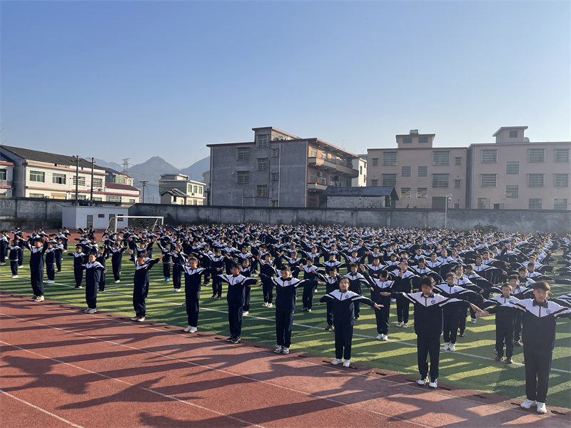 本网讯 12月6日,积极参加大福镇中学参加阳光大课间的比赛,该校学生个个精神抖擞。统一的着装、整齐的步伐、响亮的口号、标准的动作,随着青春的旋律展现在师生们眼前,全场热烈的掌声此起彼伏。学生的精彩表现得到了县基教股领导们的认可,充分展示了安化县学生阳光、积极向上的精神风貌。这次比赛,不但提高了学生们广播体操的整体动作质量,同时还增强了班级凝聚力,培养了同学们集体荣誉感、团结协作和拼搏进取的精神,是对安化县教育教学成果的一次成功检阅和展示。 此次大课间比赛将双减政策和阳光运动一小时相结合,保证学生每天有足够的体育锻炼时间,又能促进学生团结协作,积极向上的态度,丰富了校园文化生活。此次比赛虽已落幕,但大课间活动仍会常态化开展,继续期待同学们推陈出新。(通讯员 龚佳玲)