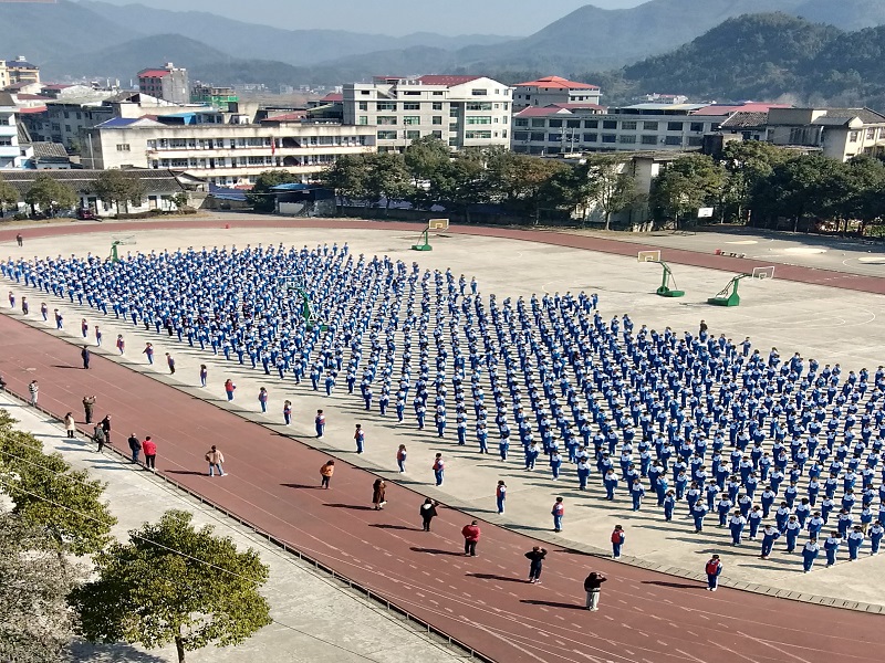 本网讯 12月6日上午,安化八中政教处组织学生进行大课间操比赛汇报。随着铃声的响起,八中学子穿着统一服装,迈着整齐的步伐,快速有序地进入到田径场中,整齐地站好方队,蓄势待发。随着跑操音乐的响起,队伍有序地向前跑动。各个方队动作规范,精神饱满,迈着有力的步伐,跑出了青春活力,跑出了八中学子的风采。 安化八中的大课间操由两部分组成,先是跑操,然后就是特色课间操《你笑起来真好看》。充满激情的旋律,展现了青春的活力。安化八中坚持大课间操活动,不仅能提高学生的体育素质,而且还放松了学生的学习压力,同时能增强学生团结意识和班级凝聚力,有利于校园文化的建设。 安化八中此次的大课间活动,既让学生参与到全民健身的运动中,又增强了班级凝聚力,让学生在锻炼之余,更好的投入精力到学习中,让学习和锻炼两不误。(通讯员 张周)