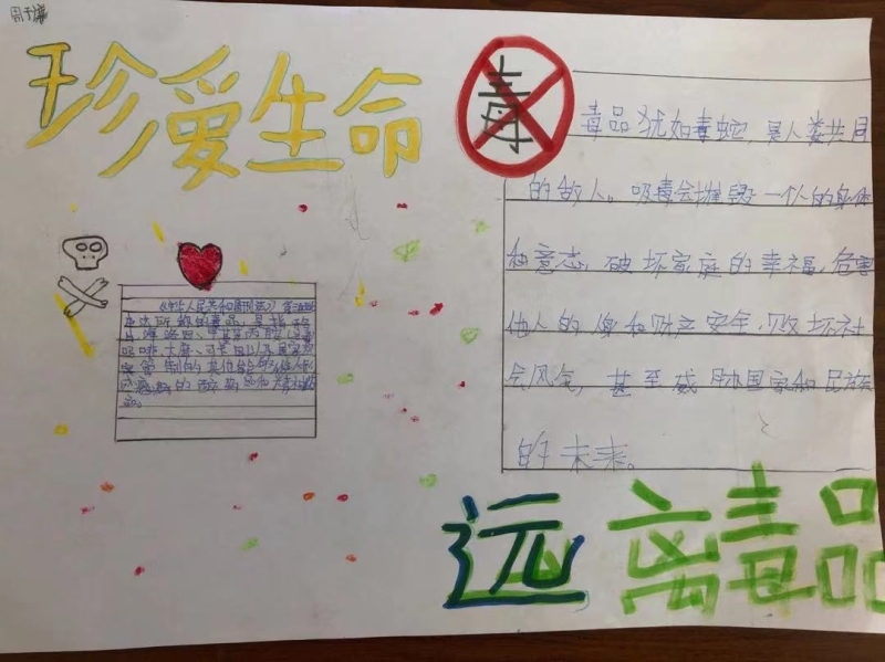 本网讯 近日,廖家坪完小五、六年级共48名学生参与了以禁毒为主题的手抄报创作评比活动。此次活动旨在提升学生认识毒品,了解毒品的危害,从而达到拒绝毒品的自我保护意识。 该校学生积极参与,并在老师们的指导下,纷纷开动脑筋,通过观看禁毒视频,查找相关书籍和资料,同学之间互相讨论交流等方法,结合自身对毒品的了解,最终,描绘出一了张张图文并茂的禁毒主题手抄报,表达他们“珍爱生命,远离毒品”的决心。教务处根据上交的手抄报,评选出了校级一等奖1名,二等奖2名,三等奖3名。 此次禁毒手抄报活动的开展,既让同学们进一步认识了毒品的危害性,增强了禁毒意识,又锻炼了学生的动手能力和交流合作的能力,并对预防青少年毒品犯罪起到了积极的作用。 |