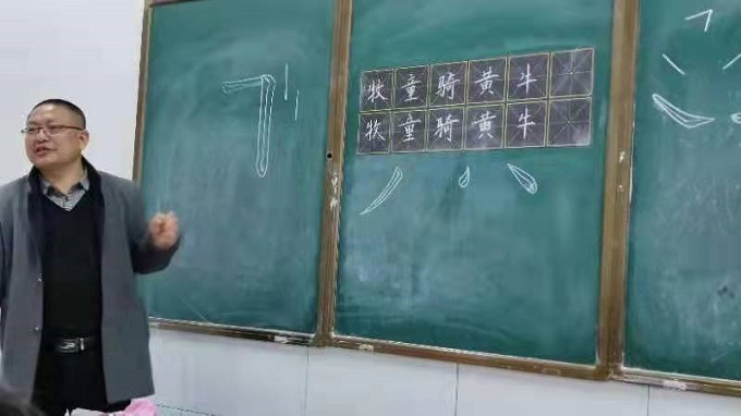 本网讯 “双减”政策以来,大福镇中心学校木孔中学为丰富师生的课后服务,为进一步鼓励广大青年教师加强自身教学基本功的锻炼,该校11月29日开办了教师书法技能培训课。