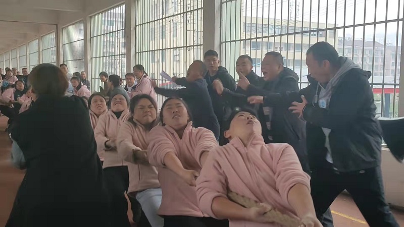 本网迅 11月29日下午,安化县首届教师运动会的第三天,江英学校拔河队击败强劲对手梅城镇中心学校代表队,挺进总决赛。 “预备——哔!”下午三时许,随着裁判的一声哨响,安化二中室内田径场上,顿时喊杀声震天。在围得水泄不通的人群中,两支同着粉红色战袍的女子拔河队伍,将小孩手臂粗的麻绳拉得笔直,可谓旗鼓相当,寸步不让。这是教师运动会拔河比赛中的两支强队——梅城队和江英队,在半决赛中终于相遇了。在经过30秒钟左右的僵持后,江英队体力耗尽,开始有点支撑不住了,梅城队将红绳慢慢拉过了中线,一小步一小步地朝己方河界移动,江英队员们的脚步也逐渐被打乱。这可急坏了江英的啦啦队员们,他们拼了命地加油,恨不得扑上去帮忙。啦啦队长刘伍红虽然早已经喊不出声音了,但仍在扯着喉咙嘶吼,脸面涨得通红。眼看红绳还差个10厘米就要到梅城队的阵地了,只听到江英队队员殷雄发出一声带着不甘的长啸,响彻全场。这一声长啸点燃了江英队员们的斗志,红绳的脚步戛然而止,然后,竟又一点一点,一寸一寸地朝江英阵地移过来。啦啦队们也喊得更卖力了,在教练员姚喜临的指挥下,加油声变得更加统一有力。场上江英的队员们随着口号声,摆动身体,移动脚步,完全掌控了场上的节奏。在持续了一分钟22秒后,终赛哨声终于响起,双方队员全都趴倒在地。江英队艰难拿下了第一局。 因为第一局耗时过长,裁判破例让两队多休息了十分钟。江英队做好了第二次拼命地准备。出乎意料的是,第二局竟然在6秒钟内就结束了战斗,江英队2:0取胜。队员们相拥而泣,高声欢呼“江英必胜”。 据悉,这支队伍组队并不久,由于工作繁忙,仅仅利用晚上抽空训练了三五次而已。队员们自己戏称:全因江英伙食好,我们是靠体重取胜的。姚喜临则说:我们既是靠实力,也是靠“吃得苦、霸得蛮,肯拼命、不服输”的江英精神取胜的。他鼓励大家在明天对阵东坪队的总决赛中继续努力,勇夺第一。(通讯员 刘圣彦)