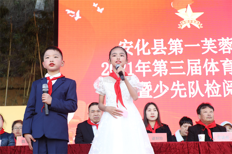 本网讯 11月24至26日,安化县第一芙蓉学校举行了以“运动、健康、快乐、提高”为主题的第三届体育运动会暨少先队检阅式,活动邀请了安化县教育后勤服务中心主任夏义荣、东坪镇中心学校政工干部袁高峰、安化多凌华城置业公司谌好玲女士及30多名校外辅导员参加。 随着组委会主任廖耀南宣布第三届体育运动会暨少先队检阅式正式开始,学校各个中队排着整齐的队伍,喊着响亮的口号,舞动着手中的道具向主席台走来,他们各个笑容满面,精神抖擞地进行了检阅式的表演。各个中队的表演精彩纷呈,富有活力,展现出了芙蓉学子阳光、积极、向上的特点。 据悉,本届运动会,学校共32个班的学生参加了60米、100米、立定跳远、一分钟跳绳等12个单项比赛及拔河、30米往返接力、15米运球接力3个团体比赛,他们将在这些项目中进行激烈的角逐。 比赛中,整个校园顿时沸腾起来,加油助威声此起彼伏。田径赛场上的运动员个个身姿矫健,疾步如飞,拔河赛场上的运动员个个拼尽全力,不屈不挠,展现出了芙蓉学子努力拼搏,永不服输的运动精神。 此次运动会是落实“双减”政策中“体质健康管理”的要求,是芙蓉学子大显身手的体育舞台,更是全校师生精神风貌的一次大展示,促进了全体师生身体素质的提高,展示了全体师生的精神风貌。(通讯员 李韦奇 万扬)