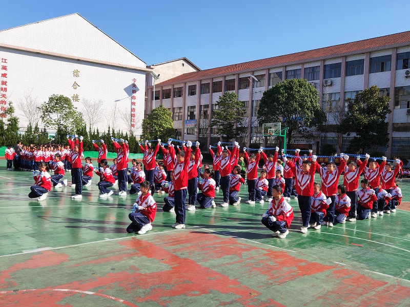 本网讯 11月24日,江英学校小学部隆重举办阳光课间操比赛,获得圆满成功。 该校的三至六年级共18支队伍参加了本次比赛。每支队伍都是全班同学上场,表演武术操和绳操。秉着“我运动、我健康、我快乐”的指导思想,孩子们踏着整齐的步伐,喊着嘹亮的口号,一招一式的表演,动作标准规范。演绎着新时代少年团结、友爱、自信、自强的优秀品格。 通过激烈角逐,最终由58班、45班等6个班级夺得一等奖,74班、63班等12个班级获得二等奖。这次比赛,是在“双减”的大背景下,展示“五育并举”成果的一次体育盛会。比赛既丰富了校园生活,增强了学生体质,也很好地展现出了江英学子的亮丽风采。(通讯员 刘圣彦 杨理军)