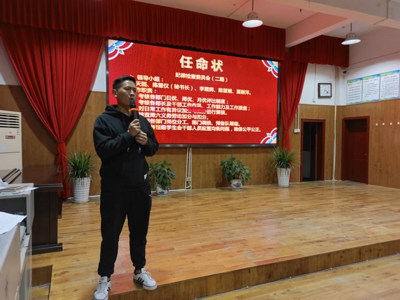 本网讯 11月24日晚,江英学校在多功能厅隆重举行学生会期中表彰大会,学生处主任谭红霞率学生处全体干事,以及全校84名学生会干部出席了本次会议。 据学生会负责人刘勇谋老师介绍,本次表彰大会全部由学生干部们自行设计流程并主持完成。会上,部长们均对各部门工作做了阶段性的总结,既肯定了干部们在半个学期以来的突出贡献,也中肯地指出了工作中的一些不足。颁奖典礼上,主持人张天磊和李霞辉动情的朗读了为获奖干部们精心设计的颁奖词:你们团结一心,无私无畏;你们乐于奉献,无怨无悔;你们伸张正义,惩恶扬善;你们奉献自己,成就他人。江英精神在你们身上体现得最是完美,你们就是最美的江英人。会上响起了经久不息的掌声。 本次表彰大会共有廖圣琪、林梓轩等30人获得“优秀干部”称号,有肖渔香、夏飞翔等14人获得“精英管理干部”称号。谭红霞在总结中勉励大家;今日的成绩只代表过去,学校的未来还得继续依靠大家,希望大家再接再厉,再创辉煌。(通讯员 刘圣彦)