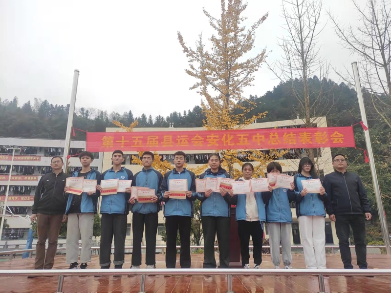 本网讯 11月20日,在操场上,安化五中举办了第十五届县运会总结表彰大会,对本次在县运会上取得佳绩的莘莘学子进行嘉奖。 大会上,安化五中学生处主任刘健源在全校学生面前宣布了本次县运会的获奖名单。接着,安化五中党支部委员、副校长刘飞舞为获奖学生颁发了奖状,安化五中党支部书记、校长龚加宜为获奖学生颁发了奖金。之后,优秀运动员代表夏博雄激情地说道:“选择了体育,我们便选择了风和雨;选择了体育,我们便拥有了泪和汗;选择了体育,我们便承受了爱与梦!”道出了他对运动和梦想的领悟。“人的一生应当这样度过:当一个人回首往事时,不因虚度年华而悔恨,也不因碌碌无为而羞愧”,副校长刘飞舞最后用保尔•柯察金一句名言鼓励五中学子为未来而奋斗。 随着双减政策逐步落实,安化五中开展多样化的体育运动,鼓励特长发展,虽然运动场地狭小,但是学校依旧开设了篮球等特色项目,引得学生一众喜爱。据悉,安化五中参与体育特长的人数在逐年不断增加,学生对体育运动的兴趣不断上升。这次在县运会上,其派出田径运动员和篮球运动员共30人,男女共有8人在田赛和径赛上崭露头角,为学生构筑了多样化的校园生活。 |