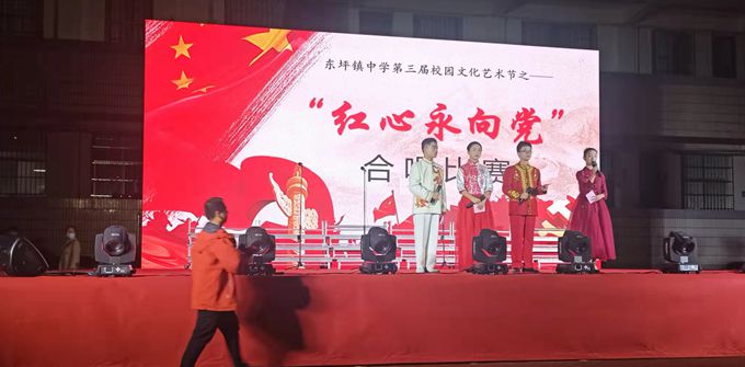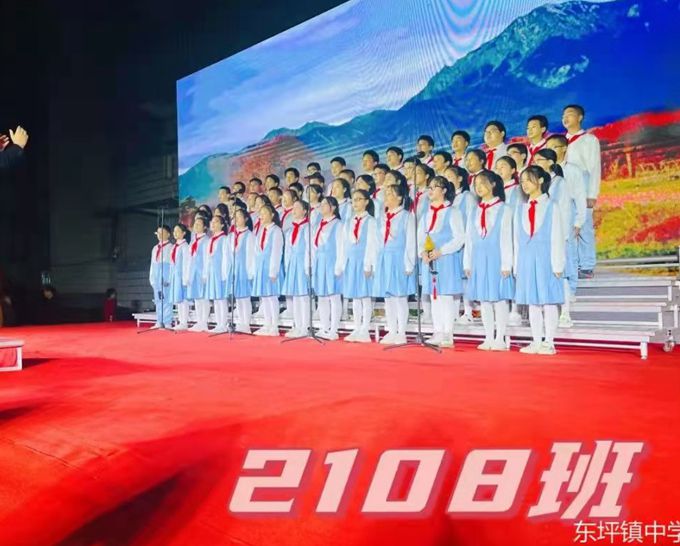 本网讯 11月17日,东坪镇中学在该校田径场隆重举行七年级“红心永向党”合唱比赛。东坪镇中心学校副校长彭学时、该校2500名师生共同参加。