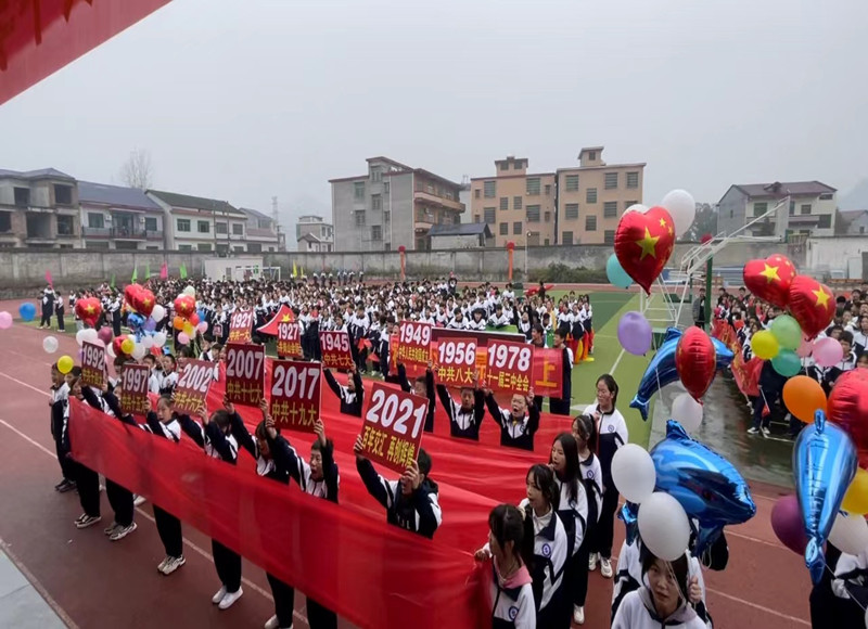 本网讯 金风送爽晨霞蔚,健儿争雄绿茵场。今年是中国共产党建党一百周年,为贯彻落实“双减”政策和“五项管理”的工作要求, 11月17日,大福镇中学在学校运动场隆重举行2021年师生运动会,全校一千六百多名师生参加了开幕式。 开幕式上人声鼎沸、气氛浓烈,无人机高空俯拍。在全校师生的热烈期盼中,国旗队率先出场,裁判队紧接其后,而后便是各个班级,他们打着励志标语,排着整齐方阵,踏着欢快步伐,喊着响亮的口号,朝气蓬勃、气宇轩昂地走过主席台,接受学校领导的检阅,独具匠心、绚丽多彩的表演方阵也让人耳目一新、为之震撼。本次运动会既是对学校体育水平的一次集中检验,也是学校素质教育、阳光体育活动的一次展示;既是对该校体育工作、师生精神风貌的一次检阅,也是对学生身体素质、竞技水平、心理承受力等综合素质的考验,更是各参赛班级集体意识、竞争意识、顽强拼搏精神的综合体现。 大福镇中学必将站在新的起点展望明天,用不懈的奋斗为全校师生塑造一道更加壮美的风景线!