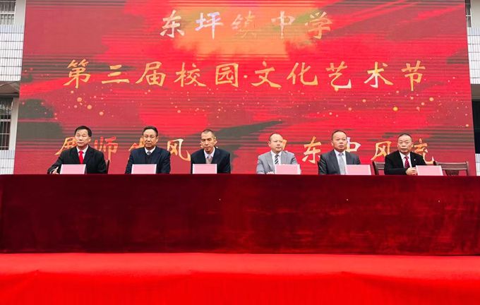 举行完升国旗,升校旗仪式之后,该校教学副校长刘卫安致开幕词,他指出,文化艺术是心灵的爱琴海,是享受文化的伊甸园,可以把学生导向尚德,尚文,向善,向美的境界。他号召全体同学积极参与,尽情展示,拼出实力,唱出心声,诵出书香,得出心得。他希望每一位东中人都成为文化艺术节上一个个跳动的音符,让美丽的青春飞扬,让艺术的花朵绽放,让东中校园洋溢艺术的芬芳。接着,教师代表,学生代表相继发言,表达对校园文化艺术节的憧憬与祝愿。最后,在该校党支部书记,校长刘志慧宣布东坪镇中学第三届校园文化艺术节开幕声中下拉开帷幕。