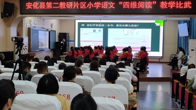 本网讯 11月16日,安化县第二教研片区四维教学比武在梅城镇完小多媒体报告厅隆重举行,来自梅城、清塘、高明、乐安四个乡镇的4位年轻教师同台竞技,精彩纷呈。 活动在该校校长夏国荣的致辞中拉开序幕,杨梦源、李琪、周婉妮、高安佳依次执教:走进《童年》《中国古代寓言》导读、速读之旅、《西游记》导读,选手均以阅读任务为导向,以阅读活动为载体实现学生与书册、同伴、教师、家长之间的多维对话,激发学生阅读兴趣,渗透阅读策略,培养阅读习惯,提升阅读素养,让评委老师赞叹不绝。 活动历时一上午,评委们依据语言构建与应用、思维发展与提升、审美鉴赏与创造、文化传承与理解四个维度予以评分,梅城镇完小杨梦源、清塘铺镇第一完小高安佳两位老师稍胜一筹,将代表第二教研片区赴县参赛。(通讯员 高永健)
