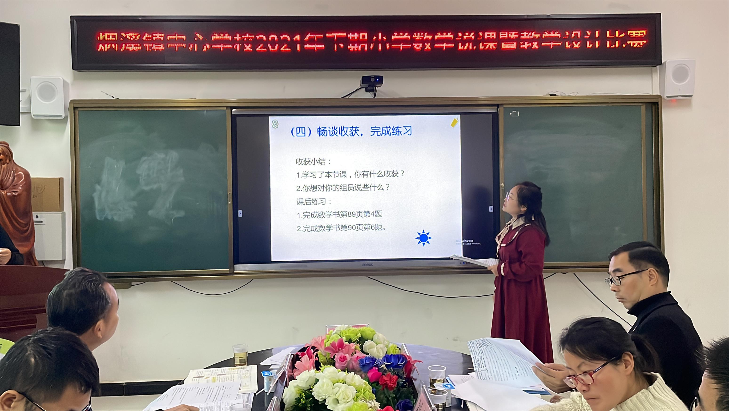 本网讯 11月9日,烟溪镇中心学校举办了2021年小学数学说课暨教学设计比赛,此次比赛由烟溪镇新开完小承办。 比赛开始前,由烟溪镇新开完小校长伍琼军致欢迎词。本次比赛共分为两个环节:首先是说课比赛,共5名教师参加了角逐,各参赛选手结合ppt进行限时12分钟的说课,期间由评委在教师说课后,对说课稿设计及课堂生成等进行提问。虽然比赛时间紧,要求高,但参赛教师个个镇定从容、思路清晰,从教材、学生、教学目标及重难点、教学方法、教学过程等方面入手,全面地阐述说课内容。烟溪镇新开完小的谌单、烟溪镇十八完小的简情会老师获得一等奖。库区名师刘开颜分别对选手的表现进行了点评,提出了宝贵的意见,并就说课、复习课教学、试卷讲评课三个内容对全镇小学数学教师进行了《立足学生 做足功夫 提高课堂质量》的专题讲座,教师们表示受益匪浅。 第二个环节为教学设计比赛,全镇23名年轻教师参与比赛,比赛范围为人教版小学六年级上册教材内容,由中心校副校长刘娟现场抽题,教师在限时一小时内写好教学设计稿。比赛开始,备考室只听见沙沙的奋笔疾书之声,所有教师都能在规定时间完成教学设计。中心校校长胡毅最后总结说道:“每位数学教师都要有使命感、责任感,立志提高烟溪镇的数学教育教学质量。” 本次说课暨教学设计比赛既是对烟溪镇教师教学水平的一次检验,又是对教研工作的一次推动;通过比赛,教师增强了有效驾驭教材的能力,促进了教学业务水平的提高。