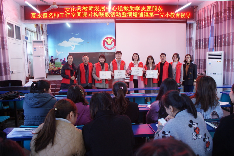 本网讯11月8日上午,安化县教师发展中心督学蒋登球率领语文、数学、英语、科学、道德与法治教研员夏永恒、夏建新、曹新生、吴乐军、王庆红一行6人深入清塘铺镇第一完小开展送教助学与教学视导活动。 首先是由“安化县送教助学志愿服务暨夏永恒名师工作室”组织进行的“同课异构”展示活动。来自东坪镇完小的语文教师张正英和本校语文教师杨承分别执教了一年级语文上册《项链》一课;来自萸江学校的数学教师瞿雄和本校数学教师罗敏分别执教了四年级数学上册《田忌赛马》。接着相关教研员与有关教师分别听取了廖娅婷、王叶辉两位老师主讲的五、六年级《道德与法治》课,阙响彦、邹娇两位老师分别主讲的五年级英语课,杨卫老师主讲的六年级科学课。 然后分教学科目分别组织进行了评课、议课,交流、指导。各位教研员对各位教者从教学目标、教学内容、教学过程、学生状态、教师表现、师生互动、教学效果、教学特色等方面进行点评总结,既肯定了各位教者的亮点与风格,又中肯地指出其存在的不足与提出了改进的建议。特别是对两名语文老师与两名数学老师展示的同课异构教学课,相同的教学内容,不同的教学构思,同课异构的课堂充满了魅力。让听课的老师们看到了不同的教师对同一教材内容的不同处理方法。两名语文老师与两名数学老师的课各有精彩之处。他们创设别致的情境导入课题,激发学生学习欲望。在展示探究环节中,老师们都能把让学生充分思考,大胆交流,教师及时点评、提炼总结。在反馈矫正环节中,所选练习针对性较强,能照顾不同层次学生的学习需求。学生参与度高,教学效果良好。达到了在异构中比较,在比较中反思,在反思中提高,促进教师专业成长的目标。(通讯员