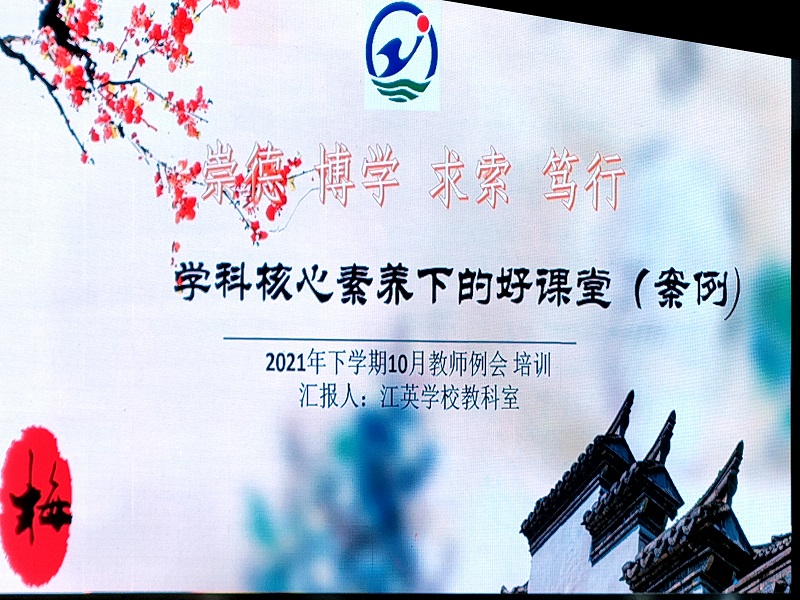 本网讯 11月8日晚6时10分,江英学校科技楼二楼多媒体报告厅灯火通明,座无虚席。该校11月份“江英讲坛”隆重开讲,初中部100余名专任教师聚集一堂,聆听讲座。 本次“江英讲坛”由学校教务干事刘慧主持。第一位登上讲坛演讲的是县优秀班主任李智群老师。李老师以《用爱浇灌,静待枝繁叶茂时》为题,由自己家一颗濒临枯萎的“发财树”,经过耐心浇灌呵护复活并长成枝繁叶茂的故事引入,倾情讲述了转变两个后进生的典型事例,介绍了她当班主任的工作经验。她讲的“每个孩子就是一粒种子,但每粒种子的花期是不同的。”“老师要能主动向学生道歉”“我们要细心呵护,要让爱心、耐心使学生转变”。这些生动的事例和朴实的话语,无不给与会人员以深刻的启迪。 第二个登上“江英讲坛”的是该校教科室主任刘伍红老师,主讲的题目是《学科核心素养下的一堂好课》。她利用精心制作的PPT课件,从“学科核心素养的提出”讲起,讲到“学科核心素养”的概念,国家教育新课程改革发展的三个阶段——双基知识与技能、三维目标、学科核心素养,再讲到怎样进行“各学科核心素养的培养”。强调指出当代教育有“五个变了”:即课堂变了、学生变了、教师变了、教学手段变了、教室文化变了,我们的教法怎能不变?“一言堂”“满堂灌”必须要彻底摒弃了!我们要继续高扬课改的旗帜,要不断完善与推进江英特质的“365”成长课堂。刘伍红的激情宣讲,赢得了老师们的阵阵掌声。最后,主持人刘慧与学校校长姚喜临分别对本次讲坛进行了总结与点评。(通讯员 王光明)
