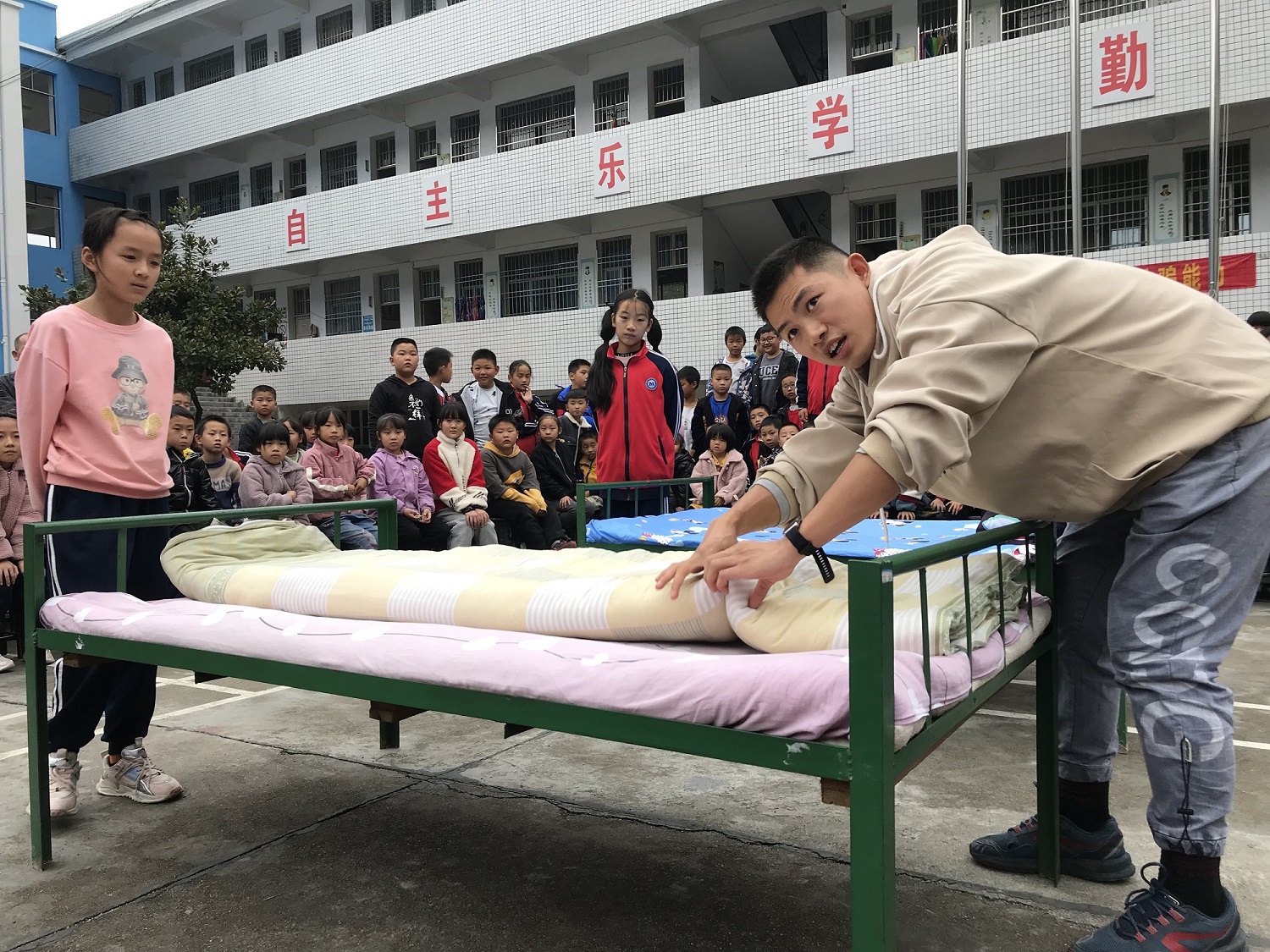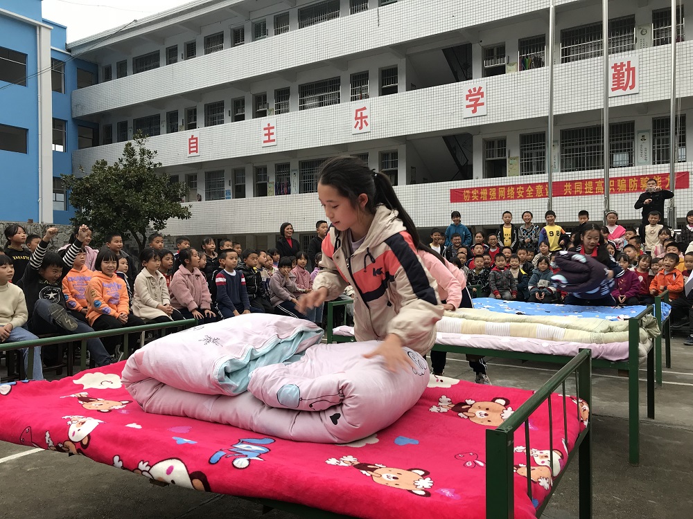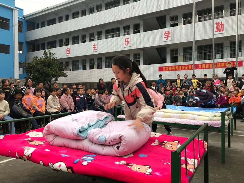 11月3日下午,木榴完小举行了首次叠被比赛,三四五六年级寄宿生同学代表参与比赛。教导主任主持本项比赛。 比赛开始前,有从军经历的胡主任向同学们展示了叠被子的恰当方法,最核心的理念是“三分叠,七分修”。接着按照六、五、四、三年级女生、男生的顺序分别进行比赛。由一二年级四位老师担任评委分别打分。综合最后的得分情况。最终评选出6名同学获得叠被子竞赛一等奖,10名同学获得了二等奖,由龚校长给获奖同学颁奖。 本在活动通过比赛形式,向同学们展示了叠被子的正确方法,强化了同学们的内务整理意识,也给平日的学习生活增添乐趣。赛后,寄宿同学的内务整理水平也有了明显的提升。甚至也有部分同学询问,下次叠被子比赛什么时候举办。这些反馈也让这次活动取得了非常不错的效果。 |