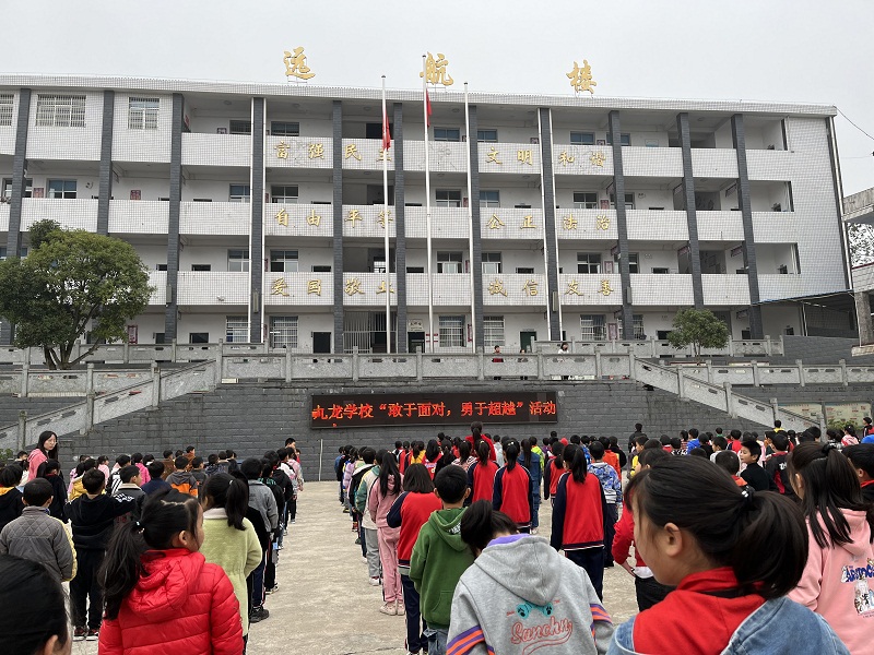 本网讯 11月1日上午,九龙学校在该校大队辅导员高淼的组织下以“敢于面对,勇于超越”为主题开展了国旗下讲话。 本次活动旨在培养学生们积极健康的心态,让他们敢于面对困难,挑战自我,不断成长。在政教主任张允毅及学生代表姚雅晴的发言中,让学生们明白了很多解决困难的小妙招。作为九龙学子,每个人都应该以积极的心态面对生活中的每一件事情。在活动最后,该校师生齐唱歌曲《阳光总在风雨后》,在大家悠扬的歌声中感受“经历风雨必见彩虹”的勇敢与自信。 衷心祝愿九龙学校全体师生,能够永远保持积极乐观的心态,铸就快乐人生,共同开创九龙学校美好的明天!(通讯员 方学文)