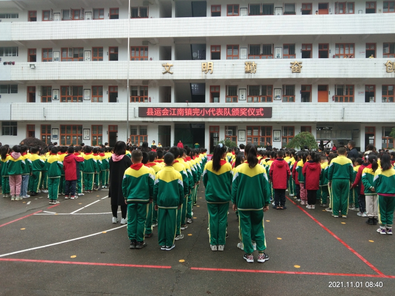 本网讯 10月31日下午5时许,参加安化县第十五届运动会的江南镇完小代表队在江南镇军鼓队的欢迎下凯旋归校,沿途不时响起雷鸣般的掌声和尖叫声。 据了解,该校在本次县运会中取得了骄人的成绩。田径队获小学组团体总分亚军,羽毛球获小学组二等奖,篮球获小学组三等奖。其中,朱林坤更是以1分23秒6的800米成绩勇破县、市纪录。 11月1日,该校组织了盛大的表彰仪式,向教练员、运动员颁发了荣誉证书、奖品、奖金。校长贺剑伟勉励全体学生向运动健儿学习,把勇于拼搏、不畏强手的精神融入到学习生活中去,做优秀学生。他同时要求全体教职工不折不扣落实“两个条例”和“双减”政策,确保学生全面、健康成长,保证学校体卫工作可持续发展。(通讯员 刘红军)