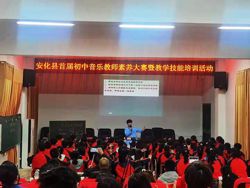 本次大赛分课堂教学展示、专业特长展示二个内容,来自高明中学的莫新宇、紫薇中学的胡双、梅城镇中学的郭琼芳、田庄中学的张智明、安化八中的姚琛、平口中学的夏明兰、冷市镇中学的付家兴等七老师参加了比赛。 七位年轻的参赛老师带来了一场视听盛宴。他们观念新、素质强、善思考,方法活,在课堂教学展示环节,展现了他们精巧的教学设计,精彩的教学艺术,独特的教学模式,这不仅仅是一次个人魅力的展示,更是新的教学思路和观念的交流和碰撞,学生学得投入、开心,教师教得认真、尽心,师生们均兴致高昂,收获良多。 在后来专业特长展示中,更是八仙过海各显神通,不仅让孩子们感受到美感的召唤和文化熏陶,还充分展示了年轻一代音乐教师们深厚的艺术素养,也彰显了青年教师旭日东升般的活力和力量,彰显了安化教育事业生力军的强大实力。 经过激烈的角逐,胡双、郭琼芳、张智明三位老师获一等奖。(通讯员:蒋志球)