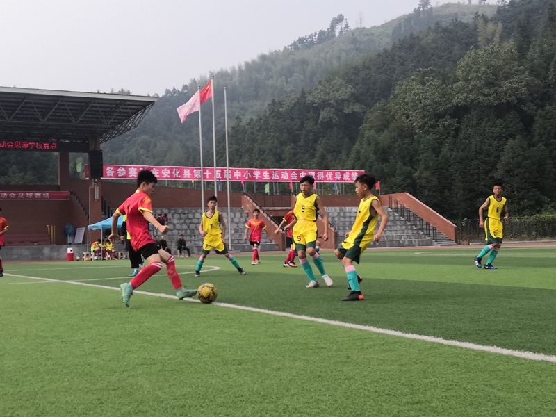 本网讯 10月28日上午,安化县十五届中小学生运动会持续火热进行的第二天,羊角塘镇中学男子足球队员代表羊角初中队与大福队对战。