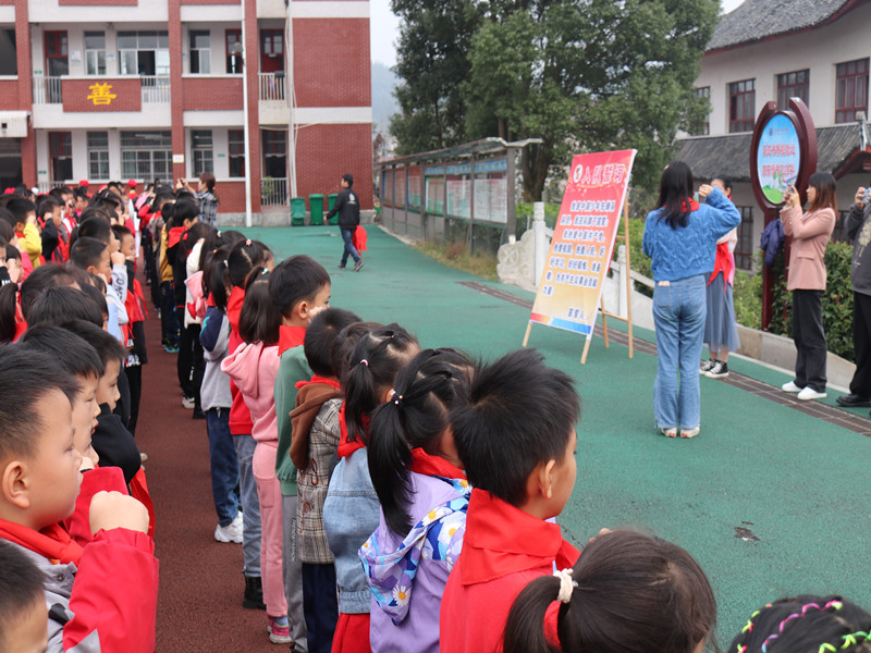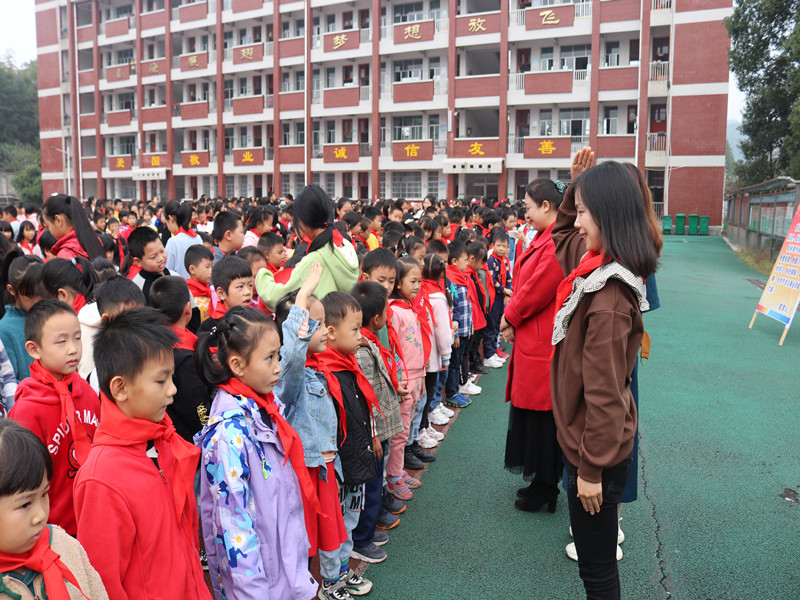 本网讯 “红色一角,别样少年”,为弘扬少先队的光荣传统,树立少先队员的光荣感、自豪感,加强少先队组织教育。10月28日上午,羊角塘镇文昌阁学校举行少先队员入队仪式。此次共有257名学生加入中国少年先锋队,成为少先队员,未来他们将在星星火炬的指引下,牢记党的教诲,全面发展,茁壮成长。 仪式期间,该校党支部委员、副校长李小平对新队员表示衷心的祝贺,同时也对所有少先队员寄予了殷切的希望,希望大家努力学习,争做“请党放心、强国有我”的新时代好少年。一年级新队员代表王一帆做了精彩的发言,表达了入队后的喜悦心情,也表示以后要用实际行动为红领巾增光添彩,争做一名优秀的少先队员!三年级夏梦媛作为老队员代表发言,她用激情昂扬的声调说出了少先队员的光荣,并鼓励新队员们好好学习,天天向上。 仪式中,伴随着铿锵有力的出旗曲,三位旗手迈着矫健的步伐引领新队员入场。队员们等待着人生中第一次意义重大的、激动人心的时刻——加入光荣的少年先锋队。大队辅导员侯周璇宣读了新队员入队名单,并对新队员入队表示热烈祝贺。 歌声嘹亮,队旗、红领巾格外鲜艳。新队员们手捧鲜艳的红领巾,个个脸上洋溢着开心灿烂的笑容。嘹亮的少年先锋队队歌响起,老队员和教师家长代表为新队员佩戴红领巾。在大队辅导员侯周璇的带领下,在庄严的队旗下,新队员们郑重地举起右拳大声宣誓:时刻准备着为共产主义事业而奋斗!全体少先队员们大声呼号“时刻准备着”,表明为共产主义事业贡献力量的决心,宣誓声和呼号声响彻该校校园。 隆重的入队仪式增强了少先队员的荣誉感和使命感,新队员们的加入为该校少先队组织增添了新鲜的血液,相信他们在入队以后,会更加努力学习,用实际行动为队旗争得荣耀,为红领巾增光添彩。(通讯员:贺彪、侯周璇)