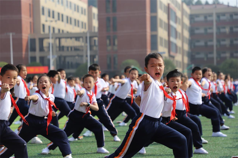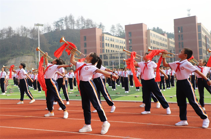 第一芙蓉学校自主创编体现学校办学特色的团体操表演分为“问道茶道”“红星向党”和“阳光少年”三个篇章,每一个篇章都展现出了第一芙蓉学校特色的办学理念和育人观念。本届团体操最低三年级10个班同学的表演获得了在场各界人士的高度赞扬。