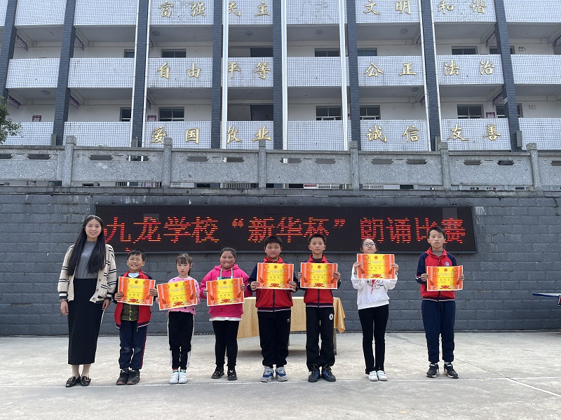本网讯 10月27日下午,九龙学校全体师生齐聚一堂,在教导主任刘敏的精心组织安排下举办了“新华杯”朗诵比赛。