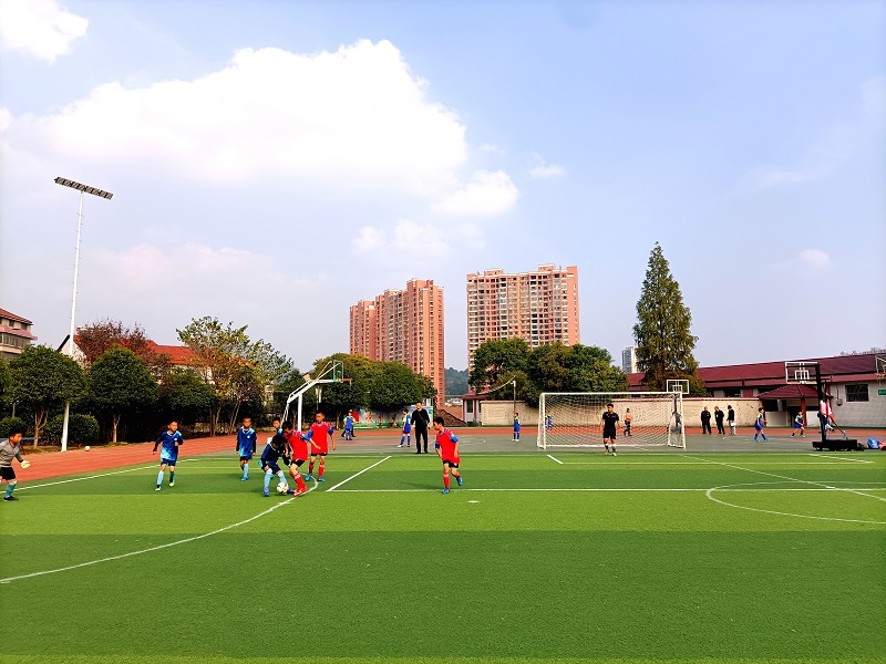 赛场上,马路镇完小对战羊角塘小学球员们对对手均是虎视眈眈,瞧!队员们都在奋力拼抢着脚下的球,拦截、抢断、接球、过人、射门……你进一球,我进一球。而场边的教练员似乎更加紧张,大声指挥队员们盯、抢、跑、拦截,场面异常激烈,在常规比赛时间内,双方战成了1:1平。