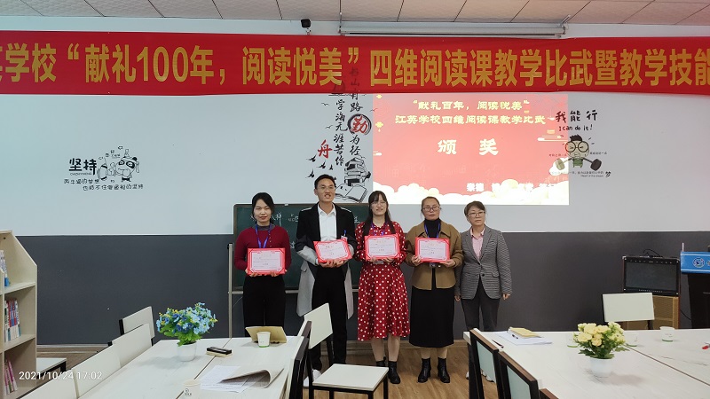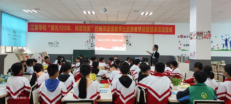 本网讯 10月24日,江英学校举行“献礼100年,阅读悦美”四维阅读课教学比武暨教学技能培训活动。这次活动在该校布克书店举行,县基教股股长黄共和,副股长周琼,县教师发展中心初中部教研主任邓健等出席并担任评委,该校校长姚喜临,副校长刘艳,督学谌安云等全程参与活动。 该校有初中部的6名语文教师参加了此次比武。他们均以初中语文教材中推荐的必读名著为文本,或用目录探读法,梳理内容,激发学生的阅读兴趣,消除学生与经典之间的隔膜;或用精彩赏析法,精读片段,赏析文本,用以提高学生的阅读能力;又或者从小说的三要素入手,深入探讨小说的社会意义和价值,丰富学生的精神世界,培养学生的审美情趣。如蒋海波老师是带领学生赏读《朝花夕拾》。他用作品中人物的经历作为主线,引导学生赏析文本,从童年鲁迅,少年鲁迅,青年鲁迅的经历来概括和评析作品,带领孩子们通过阅读本文,丰富人生感受和体验,厚实文化积累。又如戴思妹老师的课,以《昆虫记》中的精彩部分为文本进行精读,引导学生向法布尔学观察,向法布尔学写作,向法布尔学情怀。六位选手大显身手,六节堂课精彩纷呈,让学生和听课教师大饱眼福。经过激烈角逐,最终由戴思妹和陈超辉两位老师斩获一等奖。 比武结束后,邓健又做了中肯的点评和精彩的讲座。活动为期一天,一直到下午五点才划上圆满的句号。(通讯员