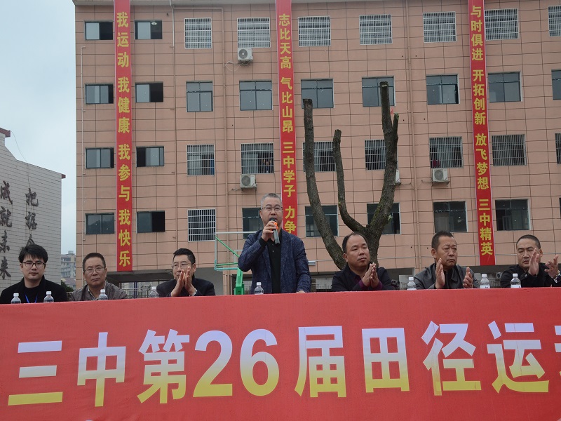 本网讯 10月22日8点,安化三中第26届田径运动会郑重开幕,本届运动会以“运动有我 健康有我 强国有我”为主题,历时三天,以班级为单位的17个代表队将展开激烈角逐。该校校长黄梦林,副校长肖兴旺、吴汉军,总务主任郭卫红等领导悉数出席仪式。 开幕式在师生们澎湃的心绪中开始,国旗护卫队迈着矫健有力的步伐入场,庄严地举着国旗走过主席台,校旗护卫队、会标队、彩旗队紧跟其后依次入场。各班方队精心准备了入场表演,经过反复地排演练习,他们的步伐整齐雄健,带来的歌曲和舞蹈洋溢着青春激情,点燃了现场气氛。随后,裁判员方队入场,会场奏响了庄严肃穆的国歌,五星红旗缓缓升起,肖兴旺致开幕词。在体育精神引领下,裁判员及运动会代表宣誓,表示将学习奥林匹克精神,尽职尽责,全力以赴。 据悉,本届田径运动会为该校新田径场建成后的第一届运动会,距离上一次运动会已过去四年,它在全体师生的期待中开幕,也将在大家的携手拼搏中精彩绽放。