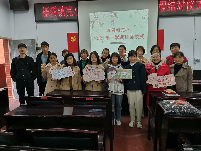 本网讯 柘溪镇完小于10月19日12:40在四楼会议室举行柘溪镇完小2021年度“青蓝工程”师徒结对仪式。 本次活动由教务处主任邓冠兰主持。首先学习了“青蓝工程”活动方案,解读了师徒结对的意义,并由副校长邓超珍宣读了结对名单,总务主任邓飞跃为指导老师颁发了聘书。在本次仪式上有七对教师结成了帮扶对子,徒弟诚心为师傅奉上热茶,向师傅行礼,师徒互赠信物,并且签订了结对协议。同时,指导教师代表发言情真意切,青年教师代表的发言表达了徒弟们肯学、乐学的决心。 此次结对活动时间虽然不长,但是意义深远。师徒结对,是一个开始,更是一个传承。活动最后,校长邓美婷作总结发言,她希望年轻教师谨记领导和师傅的教诲,虚心学习、扎实工作。多听课、多思考、多改进,尽快提高教学业务水平。让师徒携手同行、共同成长!不负芳华,逐梦前行!在“师徒结对”的良好契机下,相信柘溪镇完小的青年教师一定会茁壮成长起来!(通讯员 邓冠兰)
