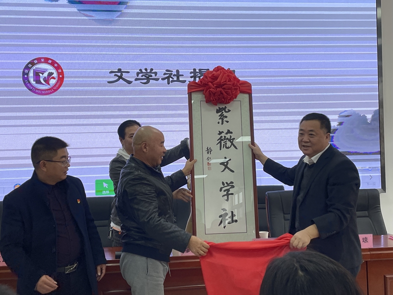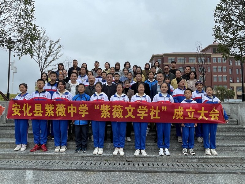 本网讯 10月19日,安化县紫薇中学举行紫薇文学社成立大会。湖南省文史研究馆馆员、湖南省文联专职作家廖静仁,中国作协会员、湖南省诗歌协会理事、安化县文联主席李定新,湖南省作家协会诗歌学会会员、益阳市作协副主席、安化县作协主席、安化县文化馆馆长刘盛琪,县教育局基础教育股副股长周琼等领导应邀出席。 会上,廖静仁和李定新一同为紫薇文学社揭牌。随后,校长曹文武致辞,他说,“文字可以磨砺自己,陶冶自己,升华自己。”并寄语同学们,借着紫薇文学社的平台,提高自身的文学素养,以我手写我心,勾勒出生命的别样风采!社长梁艳霞代表文学社发言,描绘了文学社的发展目标,并表示一定不负众望,努力将紫薇文学社办好、办强。接着,文学社社员袁宇彬发表感言,将自觉参加文学社的各项活动,认真听讲座,积极参加学习讨论交流,在紫薇文学社这片肥沃的苗圃里生根、发芽、开花、结果。 接着,罗婷、梁艳霞、胡双三位老师分别朗诵了三位作家的作品,伴随着低缓的音乐,与会的师生都沉浸在作家笔下的世界。 出席会议的四位领导都表达了对紫薇文学社成立的祝贺。廖静仁寄语所有师生,希望紫薇中学的文学之花像“紫薇花开,自由自在”的校训一样,自由自在的开放;并且勉励师生立足大地,立足生活,立足当下,勇敢地追求心中的文学梦想。刘盛琪鼓励紫薇师生积极向他主编的《山花》杂志投稿。李定新说,学校是教育热土,文学社是文学的园地,建议同学们将文学作为一生的爱好,在文学的创作上要有自己的风格特点和特色,鼓励师生在文学道路上越走越远。随后,周琼就如何阅读和写作做了专题指导,并说,作为文学爱好者,一定要勤读勤写,常读常写,才能借文学的梦想,展翅飞翔。 紫薇文学社的成立将丰富学生的课余生活,提高学生的写作水平和文学素养,让他们在文字的滋养下,成长为腹有诗书气自华的翩翩少年。(通讯员 梁艳霞 李晴)