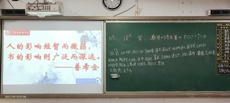 本网讯 今天早上,笔者刚刚走进江英学校的大门,老远就听到从教学楼传来的琅琅读书声,激情十足。 笔者走近教室,发现该校学生的晨读课与众不同:学生一个个站得笔直,手捧书本,目不斜视,旁若无人,高声朗读,自信满满,活力四射,朝气蓬勃。找不出心神不宁、偷懒耍滑的孩子,也看不到内向胆小、羞于表达的学生。语文或英语科代表早早在黑板上板书好早自习的背诵任务和激励的格言,还及时对早读情况做出反馈,在黑板上更新着表扬和批评的学生的名单。而老师则是学生群中来回巡视,时不时停在某个学生旁边,或指导,或抽查。整个教室,全体师生,都沉浸在早自习的激情之中。笔者看了三个楼层,发现每个教室、每个班级都是这样。不禁感慨:江英学校这样的激激情早读开展得真好! 笔者了解到,早在两年前,时任江英学校初中部校长的姚喜临,就倡导全校师生开展激情朗读。他说:一个班级的发展前景,看同学们起床后的表现,就能明白个八九不离十。优秀班级,起床后一定是激情四射,朝气蓬勃,充满着青春的活力。早晨是一天的学习黄金时间,我们应该争分夺秒,不负韶华,大声朗读,释放激情。他强调,激情早读要做到“五个一”,即一个站立姿势,一个明确目标,一句名言激励,一个榜样引领,一个督促检查。他亲自为师生们做示范,全校师生纷纷仿效实行。现在该校的激情早读已蔚然成风,正渐渐地成为该校的另一张名片。(通讯员