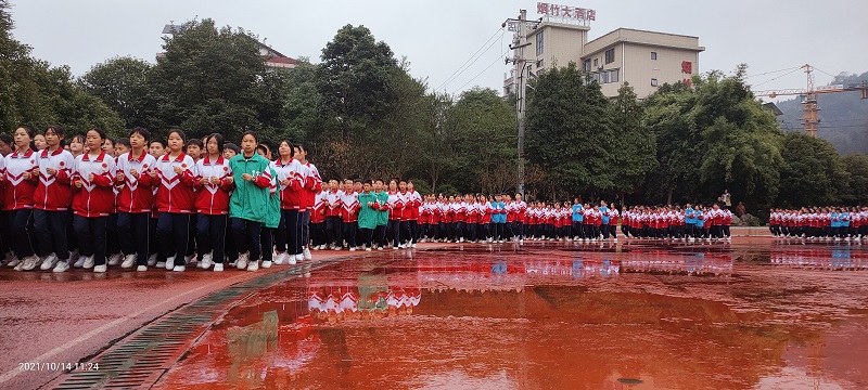 “四不两直”工作原则,直奔现场,上午9:30先到小学部观看了主题为“阳光大课间,青春无极限”。共分绳操、英语韵律操、武术操、经典诵读律动操四个篇章的大课间操。10:00紧接着来到一墙之隔的初中部,正好看到了学生跑步入场做操的情景。初中部大课间操的主题是“少年追梦,国强我强,我强国强”。共有律动操“我等正少年”、