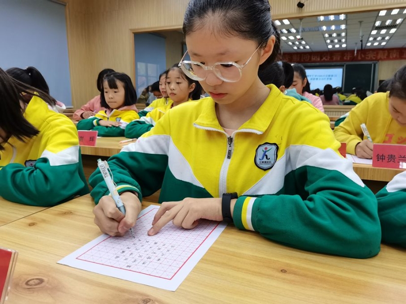 本网讯 10月15日下午一点,江南镇完小三至六年级各班参赛代表们齐聚学校云录播室参加该校组织的硬笔书法比赛。据悉,本次比赛共分为初赛和复赛两个阶段。初赛由各班组织,再由各班班主任和同学共同推选出参加学校复赛的代表。比赛现场,小选手们个个头直、身正、臂开、足挨。运笔自如、书写美观、工整。比赛结束后,教务处随即组织评委组给选手作品进行点评。此次比赛最终各年级各产生了一等奖一名、二等奖两名及三等奖三名。(通讯员 姚志军)