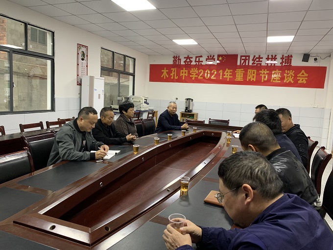 本网讯 10月14日,值此金秋送爽时节,我国传统的“重阳节”来临之际,大福镇木孔中学工会组织了退休教师重阳节专题活动。 大幅镇木孔中学会议室内欢声笑语,多位离退休老教师齐聚一堂,畅所欲言,与学校行政班子成员一起举行了"重阳节"离退休老教师座谈会。