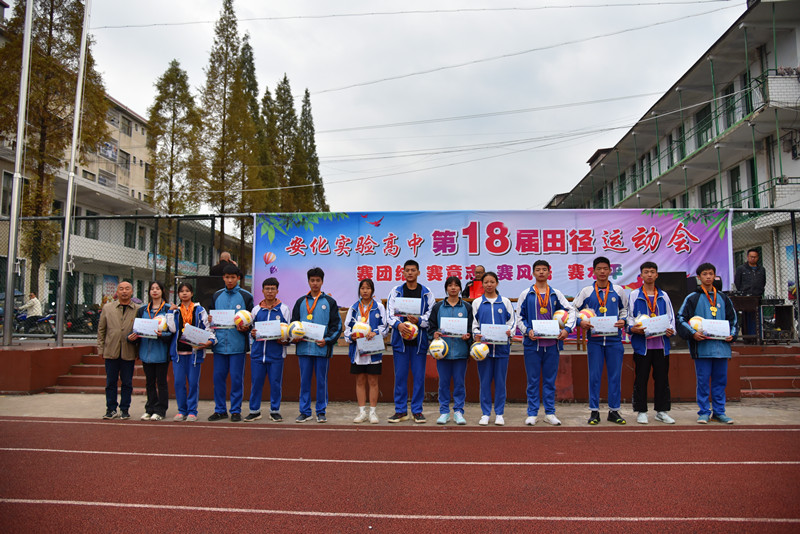 本网讯 10月11日至13日,安化实验高中成功举行第十八届田径运动会。 10月11日8时,举行开幕式,开幕式后,赛事全面展开。此次运动会共设14个单项,分6个组别全面竞赛。 在此次运动会中,C236以81分的高分夺得高三组总分第一名,C246以55分夺得高二组总分第一名,C264以61.5分夺得高一组总分第一名。C235何毅雄以53秒46的优异成绩打破男子400米校纪录,何毅雄、毛涛、黄宇、陶众涵、肖湘怡、彭媚、熊俊、毛志高、李如佳、彭平、蒋海斌、胡英豪、夏彩霞共13名运动员被评为优秀运动员。 13日16时许,隆重的颁奖典礼开始;17时许,颁奖典礼结束,第十八届田径运动会胜利闭幕。