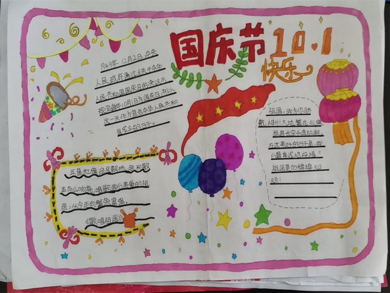 通过手抄报比赛活动的开展,极大丰富学生的课余生活,让学生了解国庆节的相关知识,增强学生民族自豪感。(通讯员 王沪)