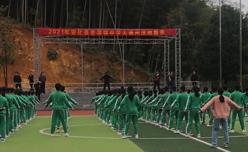 本网讯 10月11日,安化县教育局基教股黄共和、黄志红、陈方元、刘日光等一行在奎溪镇中心校校长唐汝党陪同下,检查观看了奎溪镇中学学生大课间表演。 11日上午第二节课时间,虽然天气有点微寒,但奎溪镇中学学生洋溢着青春的激情,合着进行曲旋律,为前来检查观看的教育局和镇中心校领导进行了一场精彩的大课间操表演。该校大课间操分为跑操、韵律操、羽毛球操三个部分,各个表演部分之间衔接自然紧密,精彩纷呈。队伍前有体育老师和各班体育委员领操,后有班主任监操。从队伍入场到表演结束,大课间持续约三十分钟。 据悉,奎溪镇中学把大课间操活动纳入学生日常体育锻炼之中,做到大课间操体育锻炼内容丰富、形式多样、强度适合。此举不仅锻炼了学生身体,也丰富了学生课间生活,展现了学生青春风采,成为学校课间生活一道靓丽风景。 |