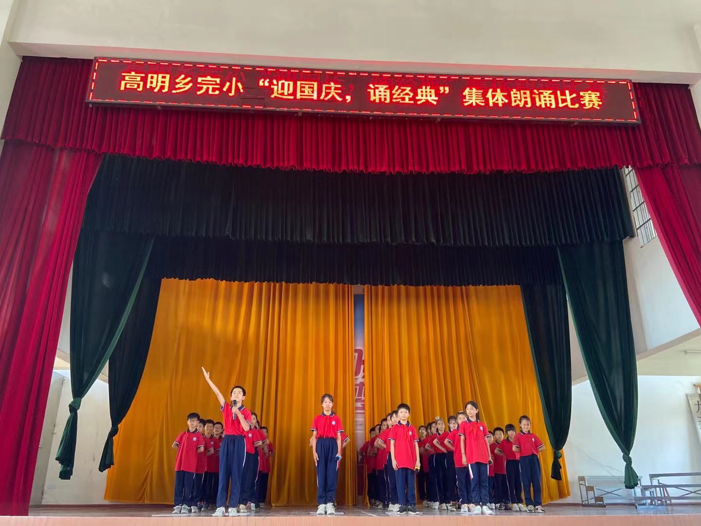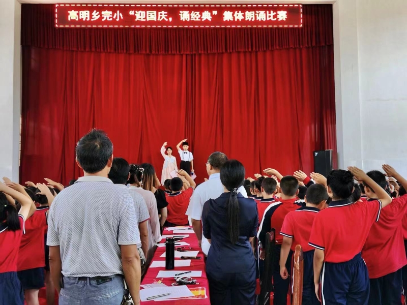 本网讯 9月30日下午,在国庆到来之际高明乡完小开展了以“迎国庆、诵经典”为主题的诗歌朗诵比赛活动。比赛在庄严的国歌声中拉开序幕,各年级的同学用最真挚的情感激情洋溢地诠释了对伟大祖国的热爱之情。台上同学的朗诵时而高昂,时而舒缓,与音乐相融的抑扬顿挫的变化,牵动着全场的气氛;观看的同学也全神贯注地投入其中。《我爱祖国母亲》《少年中国说》《我爱你,中国》《中国梦》《读中国》《热爱祖国我最美》等经典作品,在同学们声情并茂的演绎下格外精彩。此次诗歌朗诵比赛,既提高了同学们的语言表达能力和自我表现力,又让同学们在活动中得到了锻炼,同时在同学们的心中植下了爱国的种子,弘扬了爱国主义精神。这是红色血脉的赓续,更是时代荣光的传承! |