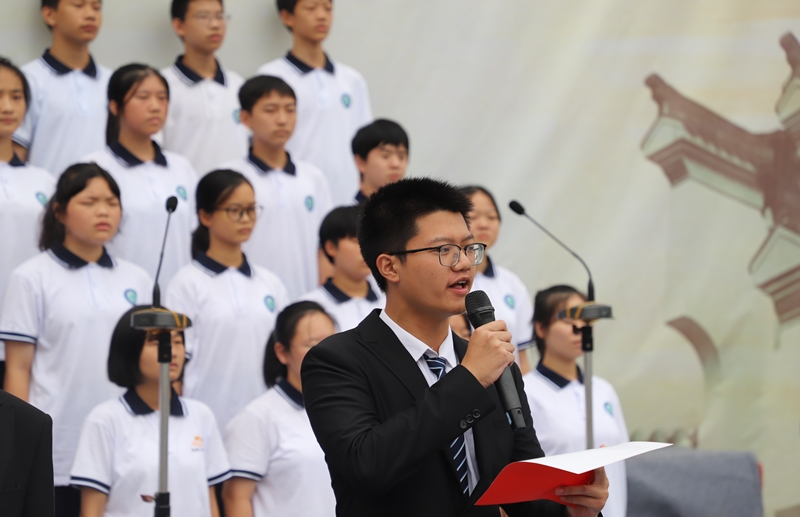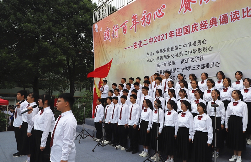 本网讯 云淡天高,好一派仲秋天气。9月28日,在祖国72周年华诞即将来临之际,安化二中于该校羽毛球场,隆重举行以“践行百年初心、赓续红色血脉”为主题的2021年高一年级经典诵读比赛活动,以实际行动向中华人民共和国成立72周年献礼。 活动伊始,安化二中副校长李寨代表学校作主题讲话,向精心筹备此次活动的师生致以亲切的问候和诚挚的谢意,祝愿活动取得圆满成功。讲话中,李寨要求全体师生,要以此次活动为契机,积极加入诵读行列中来,自觉弘扬中华优秀传统文化,为自己的人生,树立起坚强的文化自信。最后,他以习近平总书记亲自填词《念奴娇·追思焦裕禄》、亲自朗诵唐代名篇《游子吟》的故事,与在场师生共勉。 比赛中,以班为单位的18支队伍各具特色,异彩纷呈。比赛形式以集体吟诵为主,辅之以唱诗,嵌之以乐曲,和之以歌舞;或琴或筝,或伏或跃;时而烈马疾行长街,时而单鸟哀鸣丛林;时而轻盈小垂手,时而刚健立如松;婉转与铿锵环绕,悲愤与欣悦复加,为在场观众带来了一场精彩绝伦的视听盛宴。经过激烈角逐,2109班、2110班以雄厚的实力、精湛的技艺和出色的表演征服评委和在场所有观众,最终赢得比赛一等奖,其他班级分别获得二等奖、三等奖和优胜奖。活动结束时进行了颁奖仪式。 安化二中校长刘仁先,党委书记陶立荣等校领导悉数出席此次活动。(通讯员 陈中飞)