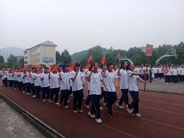 本网讯 “瞧,现在向我们迎面走过来的是锋芒毕露的1901班,这是由50个意气风发的少年组成的大家庭,他们是一群追风的少年,风雨征途,永不停歇,已连续获得两届运动会的团体总分冠军……”9月28日上午8时28分,江南镇中学在激昂的运动员进行曲中,18支运动队的队员迈着矫健的步伐行进在跑道上,拉开了该校第33届田径运动会的序幕。 每天锻炼一小时,健康生活一辈子。本届运动会为期三天,分男、女组按年级,分别设置8个单项和4个团体项目。该校总裁判长王本怀在与笔者交谈时,说“我校非常重视学生的体质锻炼,每天至少保障学生一个小时的锻炼时间。运动会就是为了检验学生锻炼的效果,同时也是为了活跃学校生活,更是为了提升学生的意志,锤炼学生的品质。” 据悉,该校秉承“健康第一”的宗旨,每年举办一次大型运动会,至今已33届。(通讯员 陶志远)