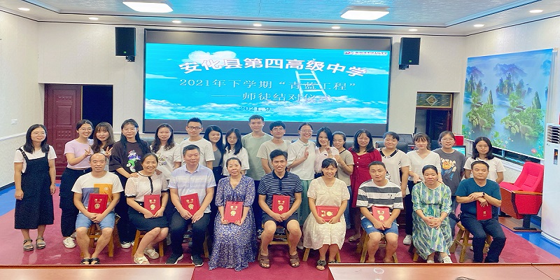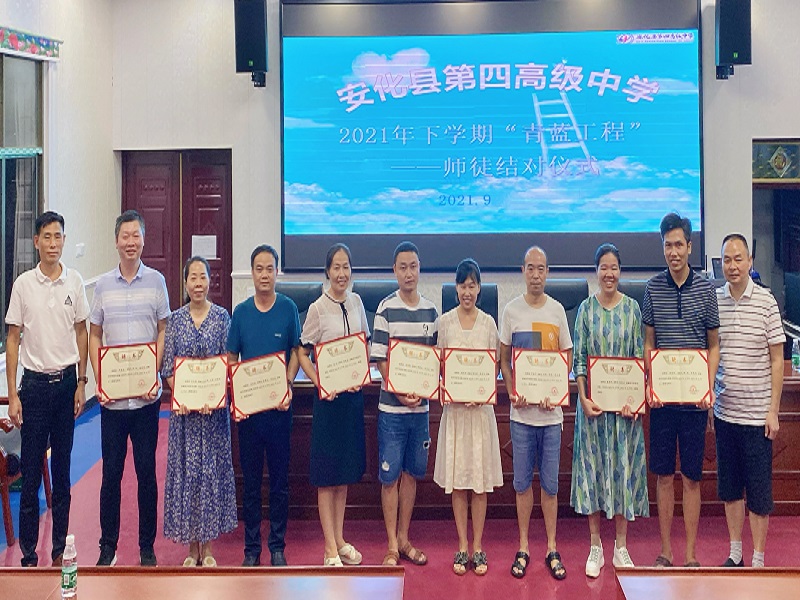 本网讯 赓续育人初心,传承青蓝精神。9月26日晚上八点,安化四中2021年下学期“青蓝工程”师徒结对仪式在学校二教学楼五楼会议室隆重举行。学校党支部书记、校长黄志刚出席,学校党支部副书记、副校长雷鸣主持仪式。