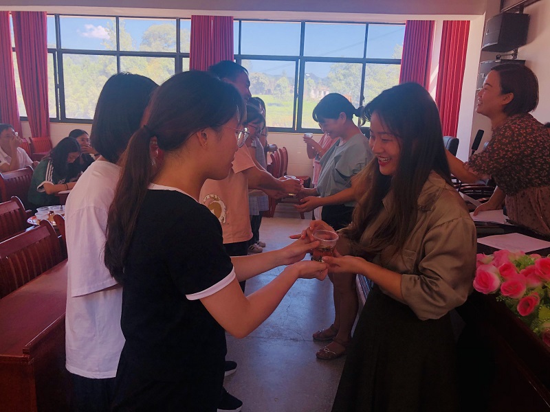 本网讯 9月26日,马路镇完小隆重举行了“青蓝工程”师徒结对仪式活动。校长熊卫军、副校长邓瑶、教导主任龚燕、办公室主任邓翠玲及全体新教师、骨干教师参加此次活动。 龚燕宣读了“青蓝工程”计划、“青蓝工程”师徒名单。指出了老教师“传、帮、带”的责任,也对新教师的快速成长提出了殷切的希望和具体的要求。徒弟们手捧着茶,心存敬意,向师傅献上“拜师礼”。师徒们必将携起手来,共同进步。