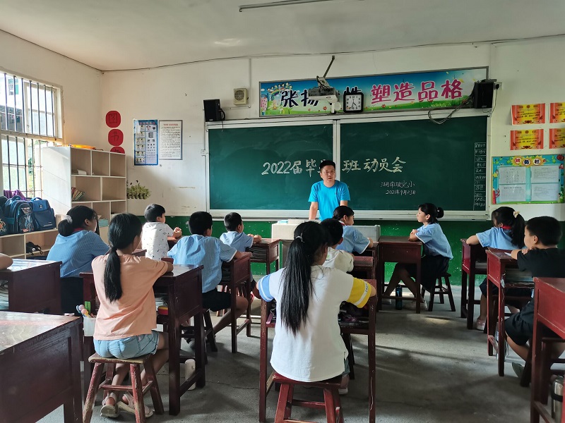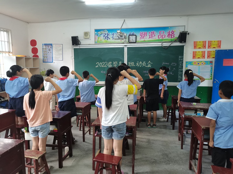 本网讯 9月23日下午,湖南坡完全小学召开了2022届毕业班学生动员大会。学校校长刘勇、教导主任邓阜等行政干部及六年级全体师生参加了本次动员大会。会议由六年级学生邓桃桃主持。 首先,刘勇简单小结了学生上学期的学习情况,表扬了优秀的学生代表,鼓励大家向优秀看齐;接着向全体毕业生提出了要求,希望学生们铭记校训,做一个诚实守信、勇敢担当的小学生,要热爱祖国、努力读书,争取考出一个优异的成绩,回报长辈、母校,回赠社会。 接着,邓阜对如何提高毕业班学习成绩提出了指导性建议,任课教师代表程晖对学生提出了学科学习的具体学习要求。六年级学生王梦瑶代表全体毕业生发言,表达了对学校的热爱,并表示将不断努力刻苦学习,不辜负学校、老师、家长们的期望! 最后,六年级全体同学共同宣誓,决定要好好学习,不负韶华,为自己打气,为父母争光,为母校添彩!(通讯员:谌波)