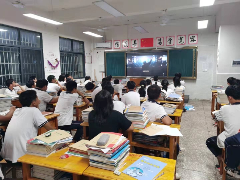 本网讯 9月16日,为宣扬红色精神,强化学生国防意识,增进学生爱国情感。安化五中组织全体学生观看红色电影,进行爱国主义教育与宣传。