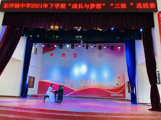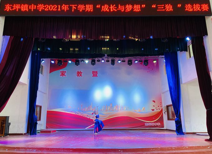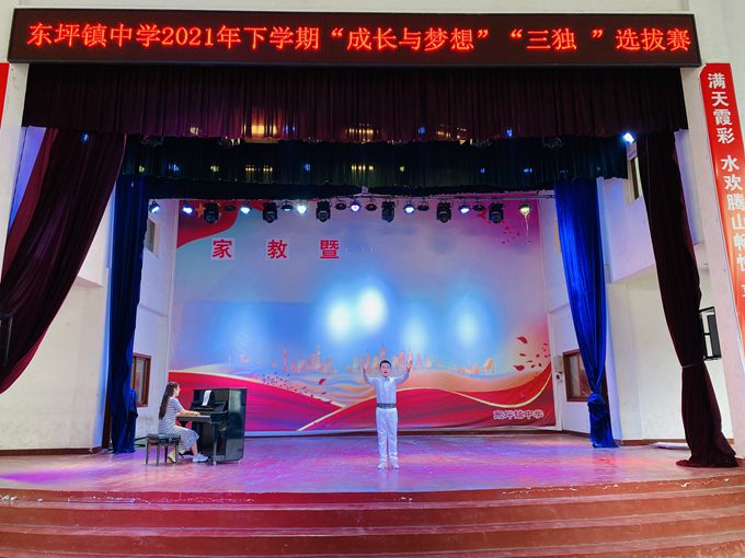 本网讯 9月15日13-17时,东坪镇中学在该校风雨球场隆重举行“独唱”“独舞”“独奏”选拔赛,积极挑选“精兵强将”参加县级“三独比赛”。此次活动,各班班主任非常重视,认真组织班级的初选工作,选拔出了具有一定水准的同学参加学校比赛。比赛时,许多班主任还争取了家长的密切配合,家长陪同孩子参加比赛。特别是独奏、独舞比赛,家长自己准备了乐器,伴奏曲,服装等,随着宣布比赛开始,拉开了一场势力的比拼。孩子们用激昂的歌声、优美的舞姿、娴熟的技艺在艺术舞台上,施展才华,展现艺术的魅力,张扬青春的活力,比赛得以及时顺利地完成。真正体现了“快乐学习,健康成长,追逐梦想,全面发展”的教育理念。 此次选拔赛,由学校筹划,音乐组熊红主、杨熹、刘小琴等6位老师担任评委,大家遵循公平、公正、公开的原则,按照规定的名额比例,认真进行校级选拔和推荐优秀学生参加市县级比赛,最后确定邓周乐、谌奕涵、张远征、王音等10位同学代表我校参加县级比赛。校内选拔赛每个项目也设立一、二等奖,给予学生鼓励。同学们精心的赛前准备,全情的表演投入,用精彩的歌声动听的乐曲,轻盈的舞姿表现自我,展现出丰富多彩的校园生活。(通讯员
